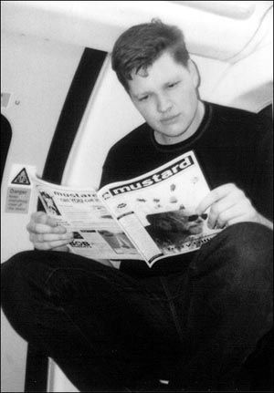 Alex is also a prolific writer, contributing dozens of articles to his comedy magazine Mustard , which he edits and self-publishes. He has also been writing sketches for Radio and TV and has written the script to a comic book that will be appearing in the first issue of the Future Quake anthology.